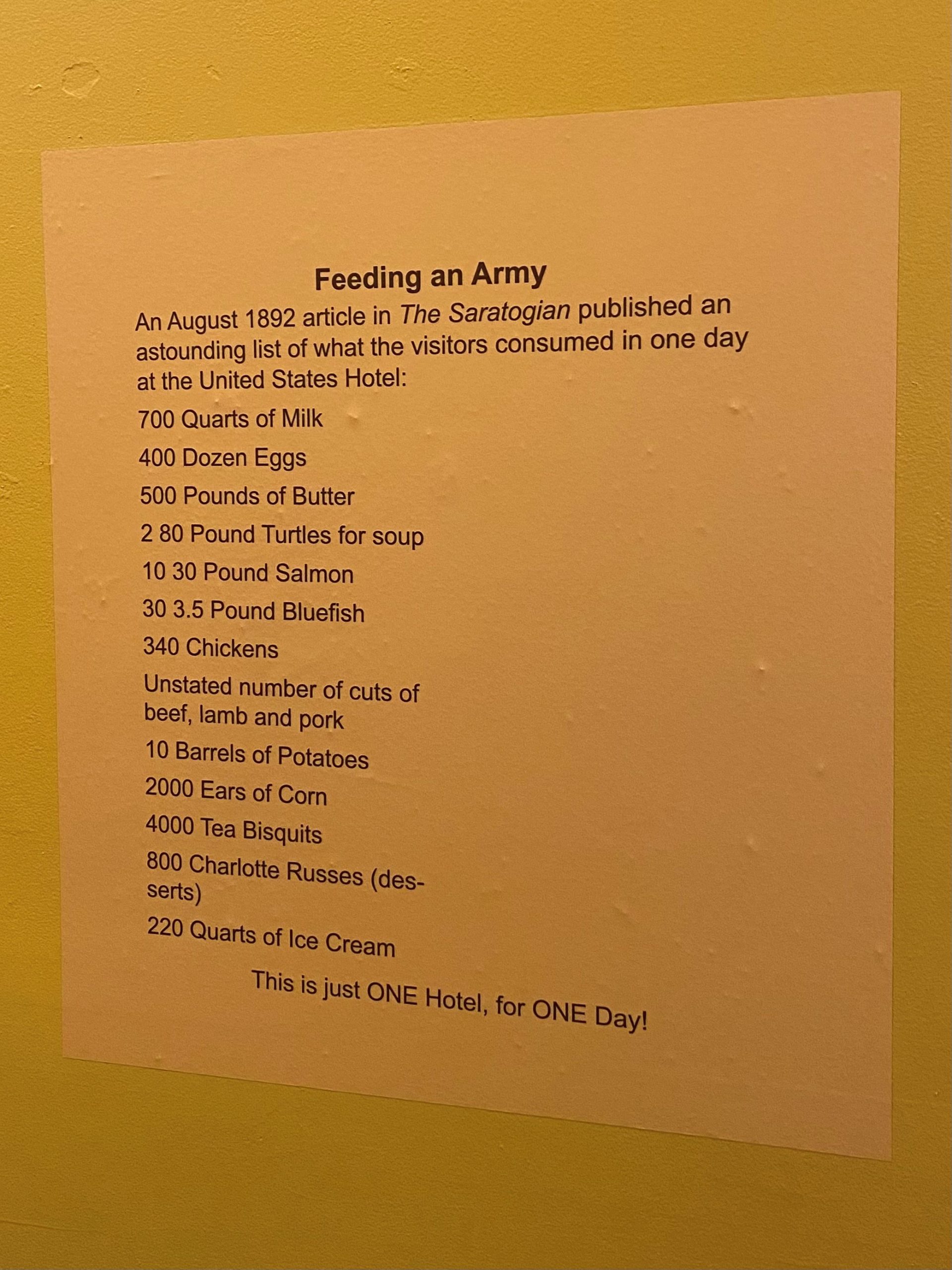 One Hotel Food List for One Day! Feeding an Army April 30, 2024 Return to: Elegant and Exuberant, Saratoga Springs Sports History, Horse Racing and Healing WatersFull resolution (1920 × 2560) Image navigation Previous Image Next Image