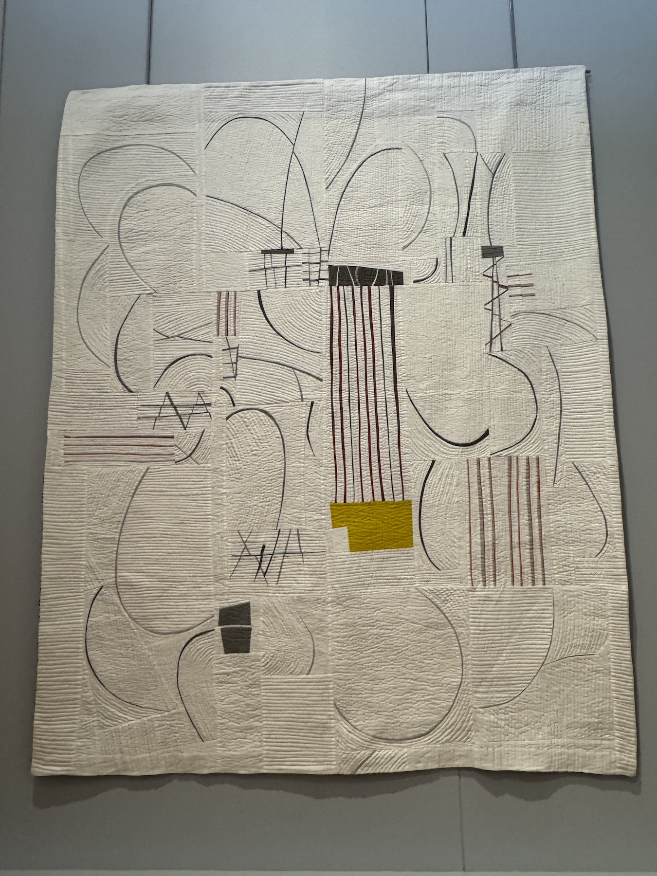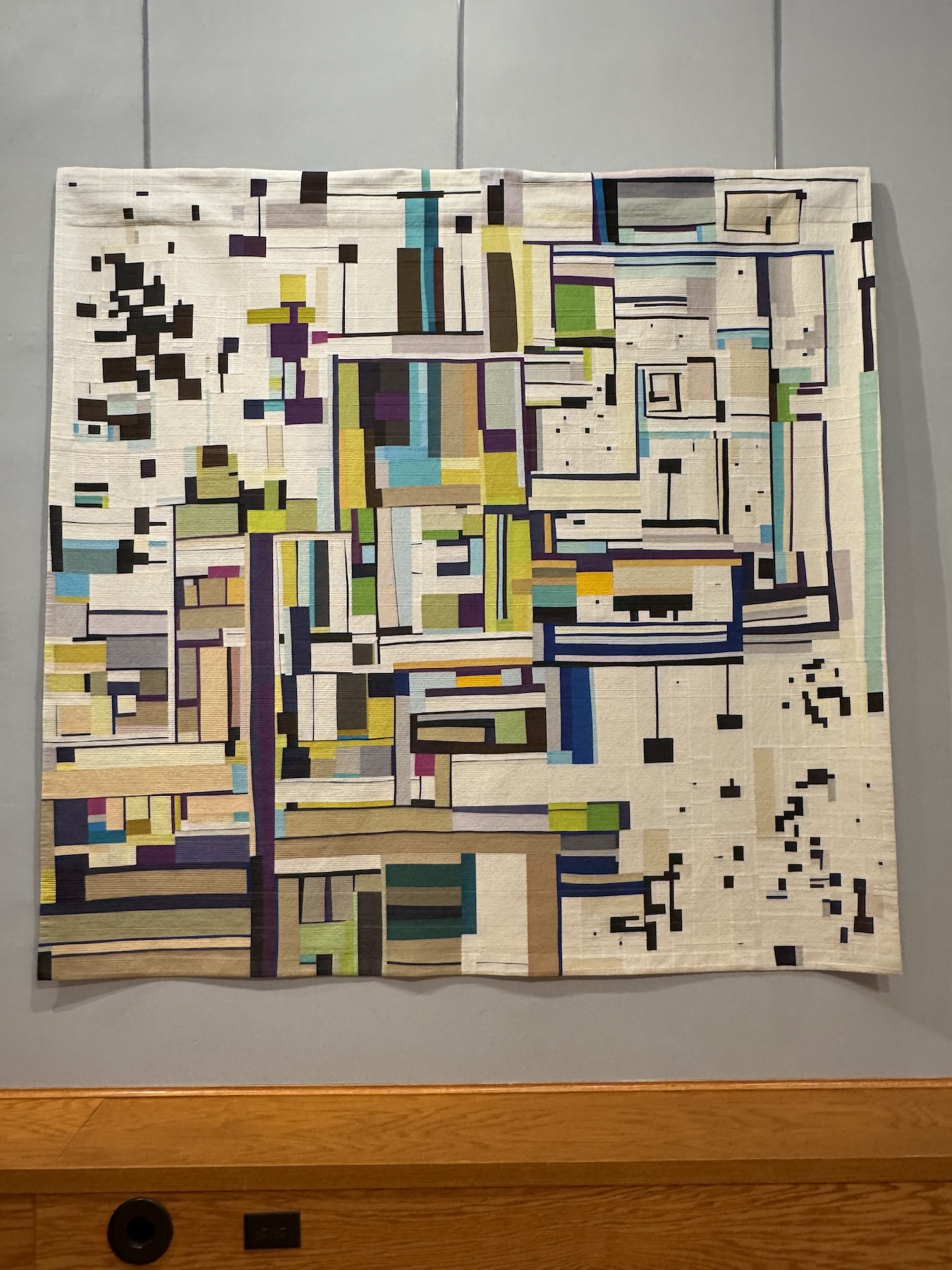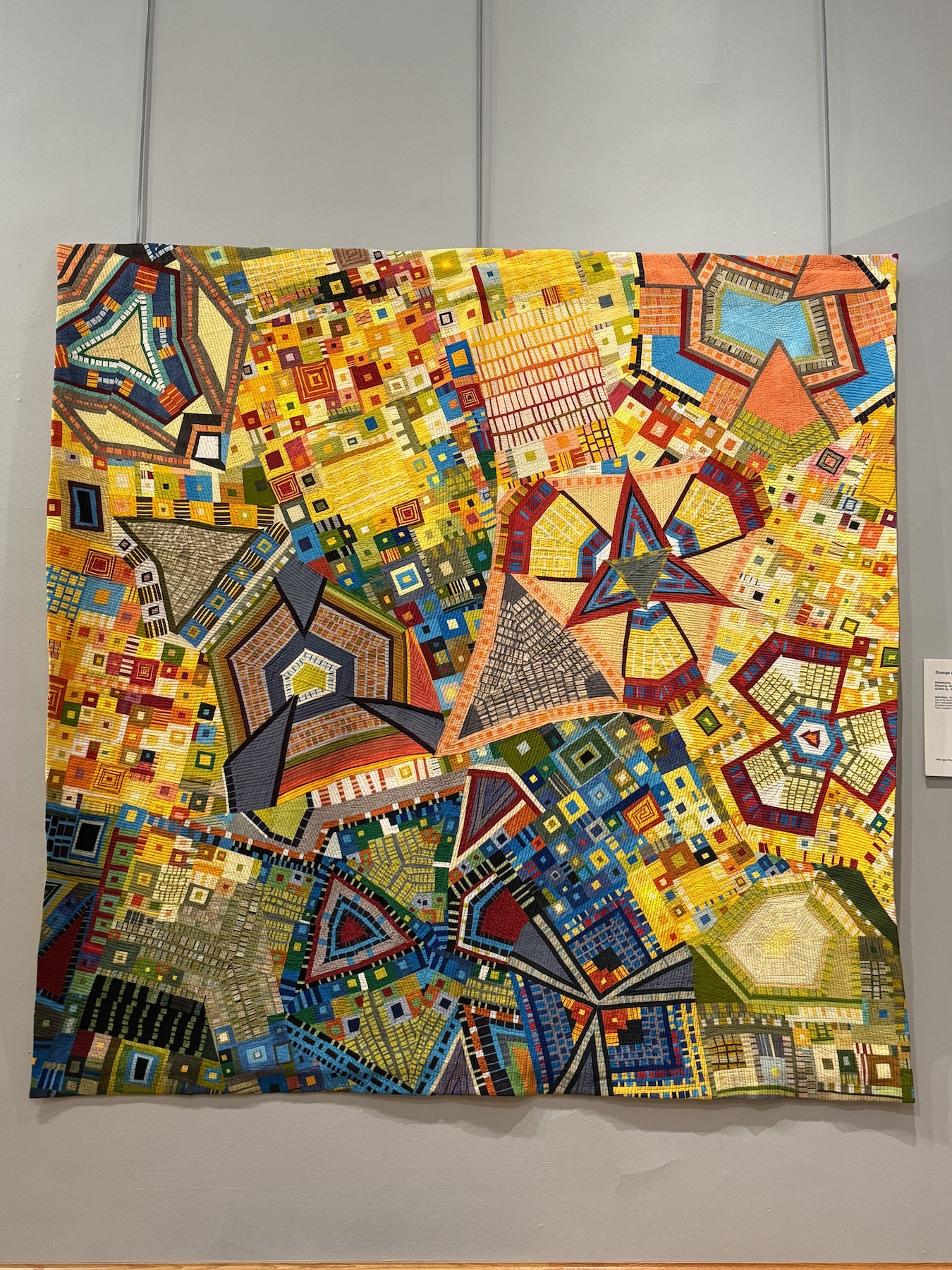 Across the collection, the skill at speaking with tiny pieces of fabric shone through (“tiny pieces” were the quilt pieces; the quilts weren’t tiny).