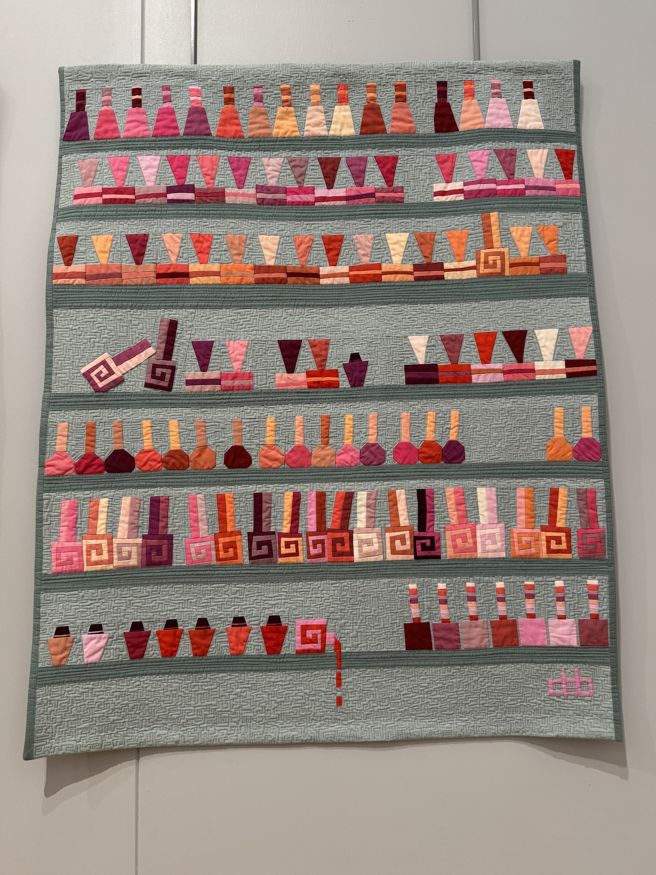 One exhibitor, Irene Roderick, a trained painter, called the quilts “utilitarian painting.” And, boy, those “brushstrokes” were good — yielding images of nail polish dribbling down one quilt, lines that swirled freely across another “canvas” and an eye-popping variety of kaleidoscopic images on other quilts.