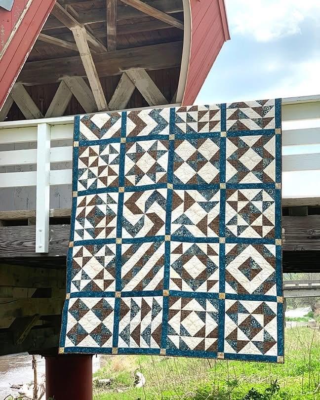 Winterset is also the county seat for Madison County so, yes, “aired” quilts also appear at a couple of the 19th  century bridges for which the county is famous. The next “airing” is set for June 6, 2026, immediately after three days of festival lectures and workshops, plus retreat time for really devoted quilt makers.
