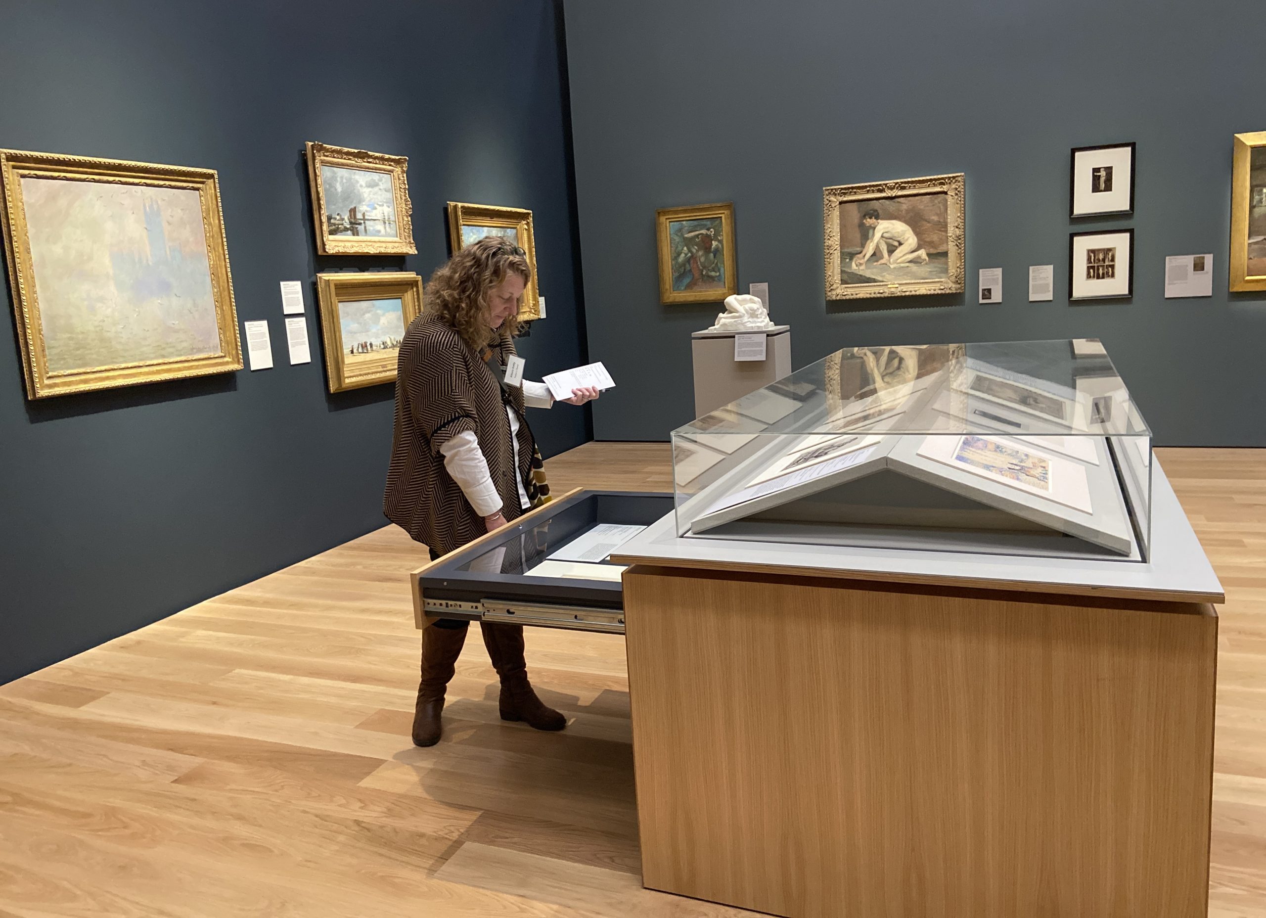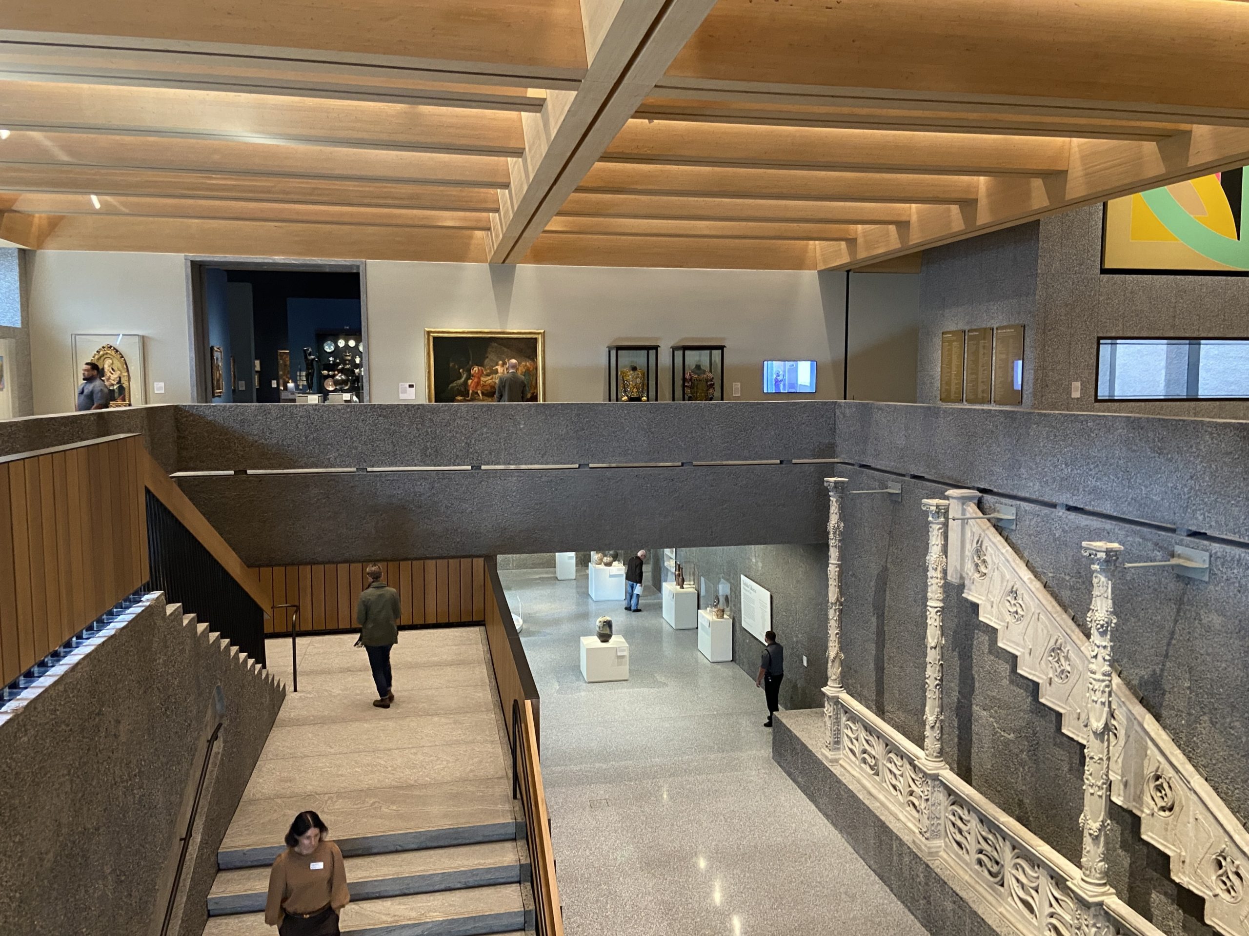 Visitors will notice a number of dense display areas, packed with objects, which are designed for study. Larger galleries are mixed with smaller spaces, including intimate Viewing Areas, such as one with a painting from Kehinde Wiley’s “The Virgin Martyr St. Cecilia” series, connecting Black men with the iconography of the martyred patron saint of music and musicians. A small installation outside the conservation studios is called “Backstories: Discoveries on the Backs of Paintings.” The museum is fairly large, but it’s easy to peek down corridors and explore an enticing gallery, large or small, that catches the eye.