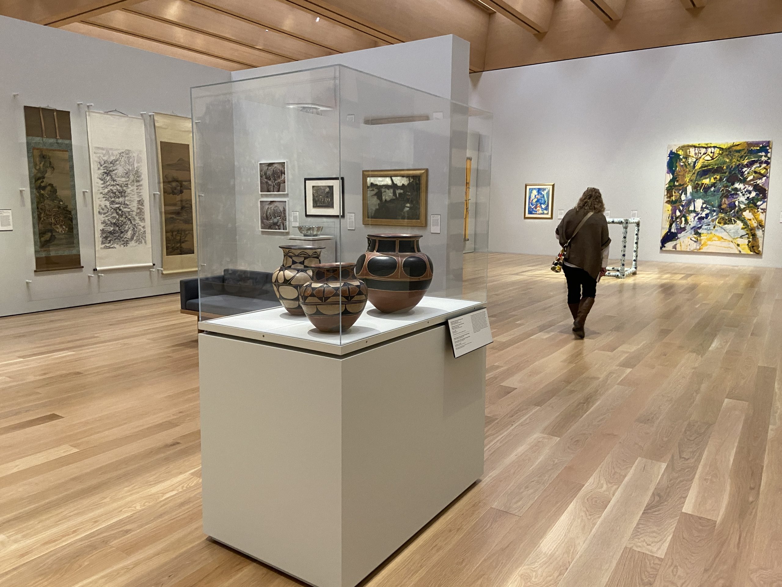 The decision to put most galleries on one floor (the second) reflects Director James Steward’s interest in fostering dialogue between cultures and time periods. Of the museum’s nine pavilions, seven display art; the other two hold state-of-the-art conservation studios and the Marquand Library of Art and Archaeology. An Orientation Gallery by the staircase presents selections from the collection, while other areas focus on broad geographic or thematic areas such as European art, Asian art, and modern and contemporary art, though works from different periods or geographical regions may be juxtaposed. In-depth labels for artworks provide context and ask questions, and storage drawers and computer screens in some galleries provide further context.
