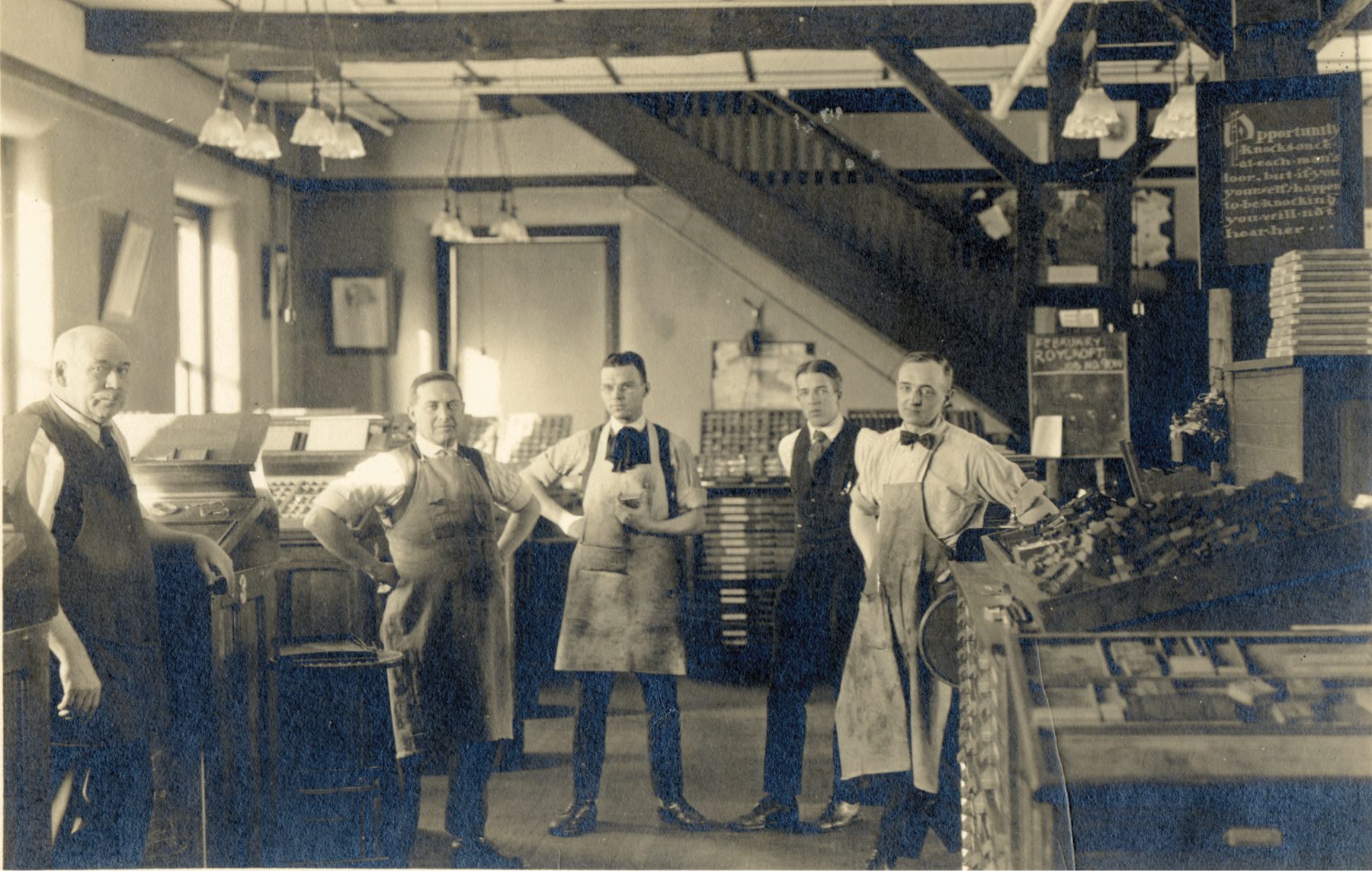 - The Print Shop: Parts of this building have been restored including the Press Room, where printers and binders are once again creating on original Roycroft presses. The Campus Museum is also located here offering a glimpse into the past, with stories of the people, philosophy and objects made.